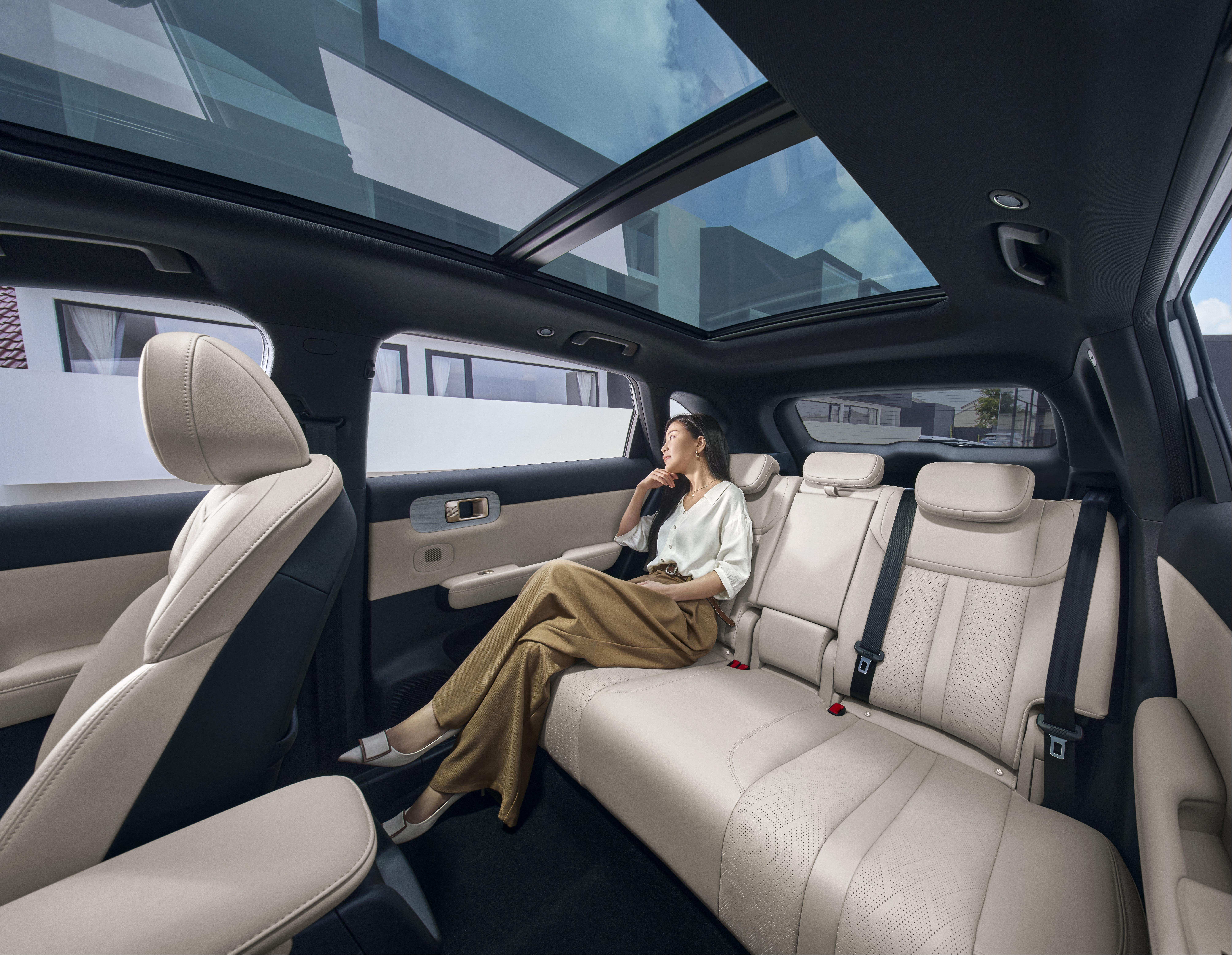 新车拥有4745/1890/1680mm的车身尺寸和2800mm的轴距。985mm二排座间距,为同级最宽,后排坐垫525mm同级最长,加上最大127°的可调节后排座椅靠,实现背、腿部环抱式包裹和支撑。
