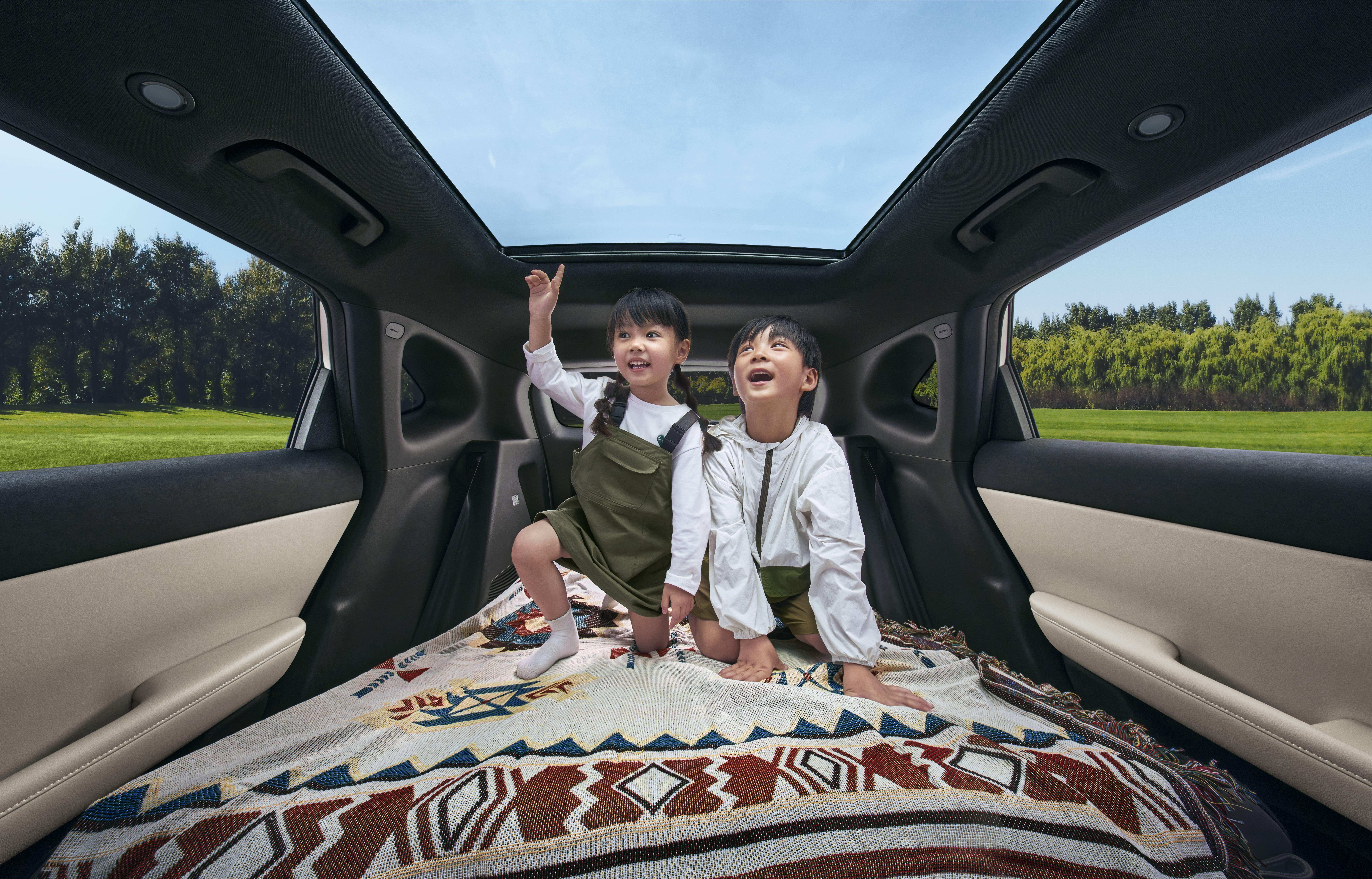 全车还支持多场景灵活座椅布局,将前排座椅180°放倒,就能和后排连接成2张『午休床』。此外,整车拥有23处储物空间,后备厢容积高达610L,后排座椅还支持4/6分比例放倒,最大可以带来1768L的后备厢空间。