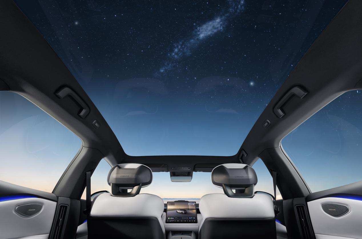 领克Z10的穹顶,采用了无横梁设计,天幕面积达到了1.96㎡。同时,天幕玻璃采用深绿玻璃和低辐射涂层组合的多层隔热工艺,紫外线隔绝率达99%,红外线阻隔率达95%,旨在做到优美与功能的兼顾。