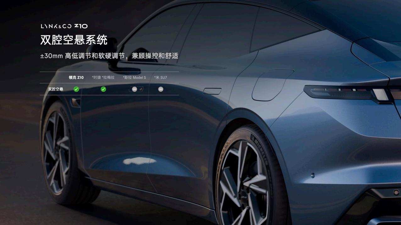 领克Z10将配备双腔空气悬架,以提升舒适性。配合CCD连续可变阻尼电控减振系统,可有效抑制起步仰头、制动点头、飞坡离地等不良车身姿态。而『领克式』的底盘调教传统也被保留了下来。