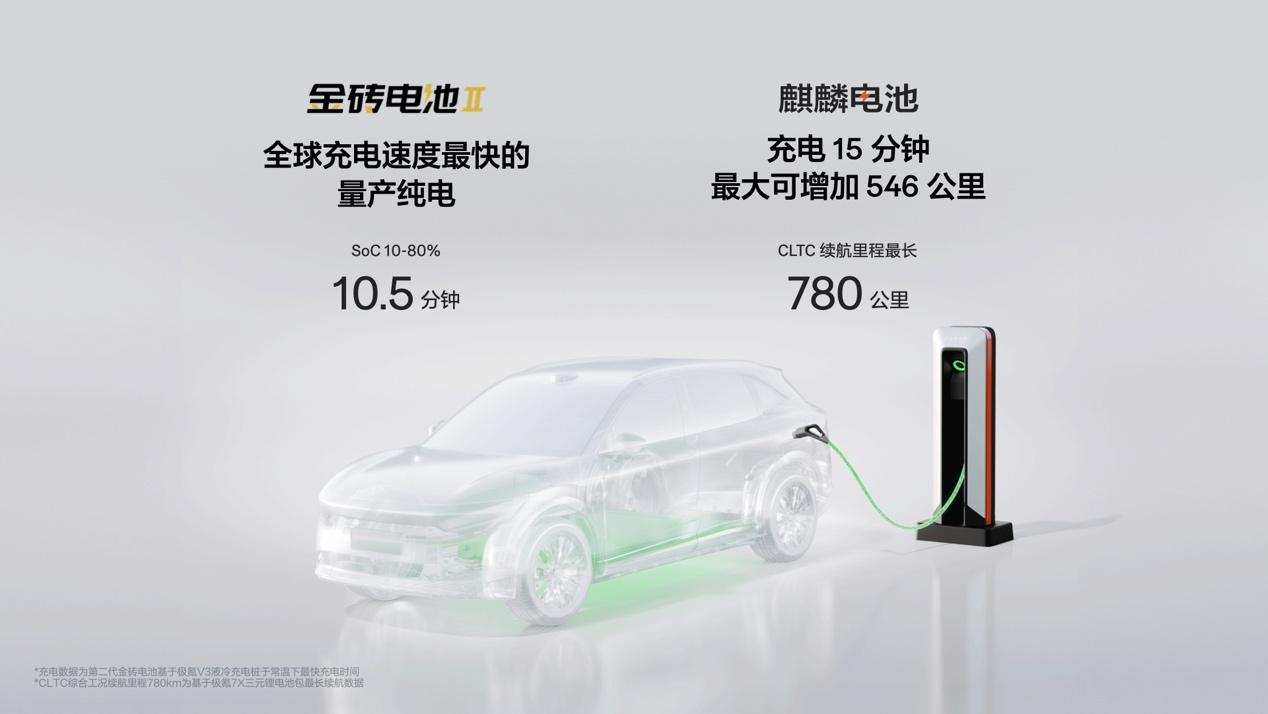 据悉,极氪7X将全系采用800伏高压架构,搭载100度麒麟电池的版本,续航里程最长可达780公里;搭载75度第二代金砖电池的版本,续航里程也超过600公里,此外,极氪7X的最高充电倍率达到了5.5C,SoC从10%到80%仅需10.5分钟。
