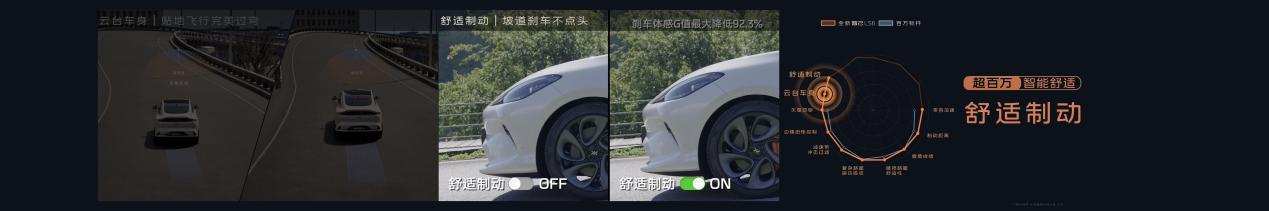 所有非紧急制动时,可实现舒适制动功能,做到无明显点头的舒适性,平路刹车体感G值降低92.3%;