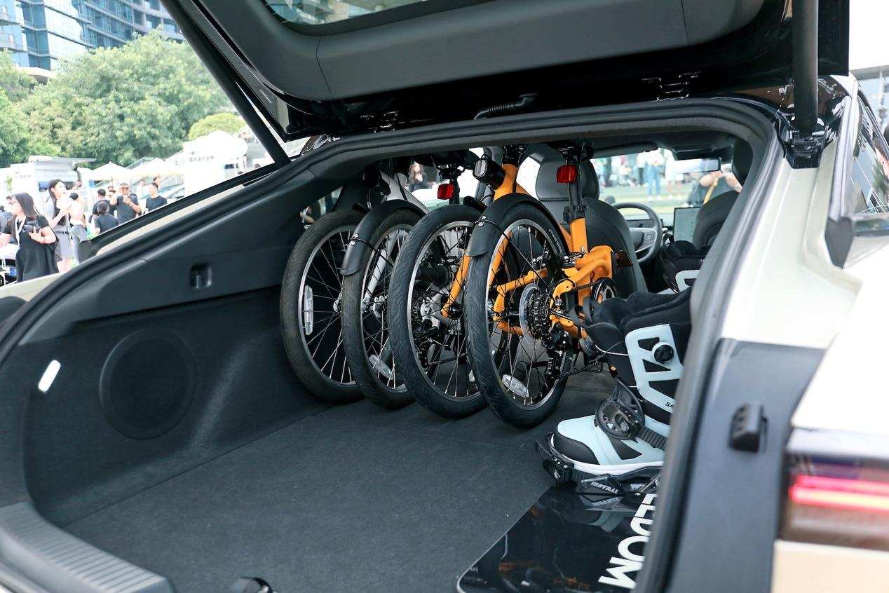 于是乎,何小鹏发布会现场就拿小鹏P7+『装』起来了,在二排放到的情况下,竟然从车内拿出了32+1个20寸的行李箱。您可能会问,为啥还要加一个1,因为这是从常规后备箱下的暗格掏出来的。已婚男士们,懂得都懂了~~