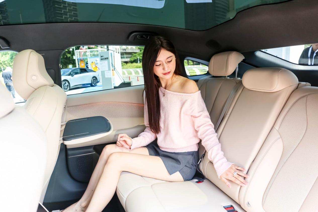 首先,采用了ONE BOX的设计,通过A柱前移、C柱后移的方式实现了舱内空间的拓展,官宣得房率达到了88%。其实这种设计在新能源汽车时代,并非小鹏P7+独有,具体还要看车内怎么布置。