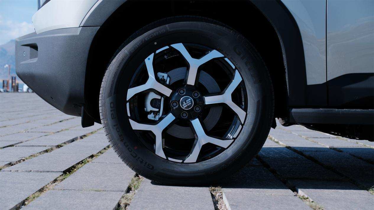 宽大的轮眉和突出的车裙设计不仅提升了车辆的视觉效果,也增加了其越野属性。轮毂部分采用了大尺寸梅花花瓣式设计,搭配黑色涂装和熏黑饰板,进一步凸显了山海T1的运动感。