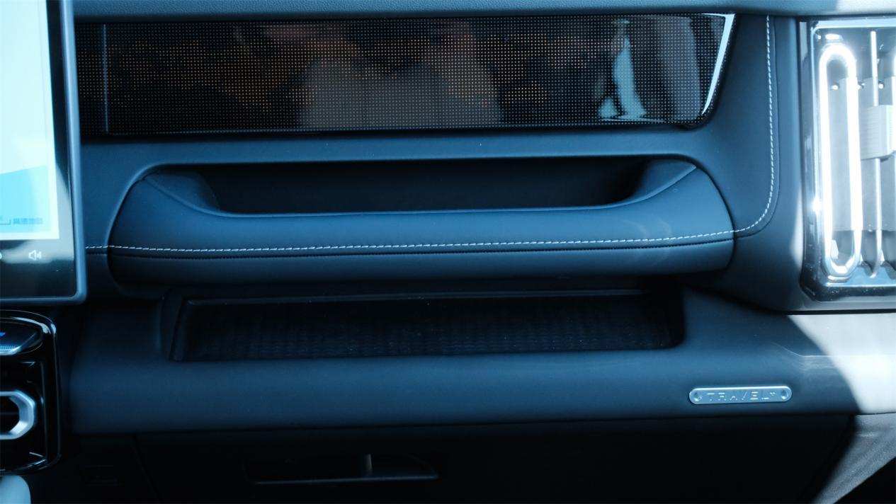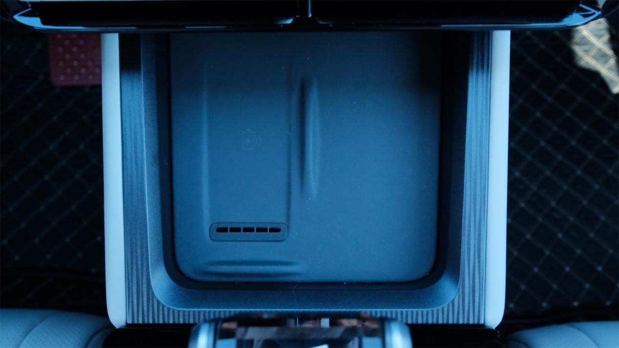 下方为置物板,左侧为带散热口的50W无线快充面板,考虑到其15万的价位,如果能做植绒就更好了。