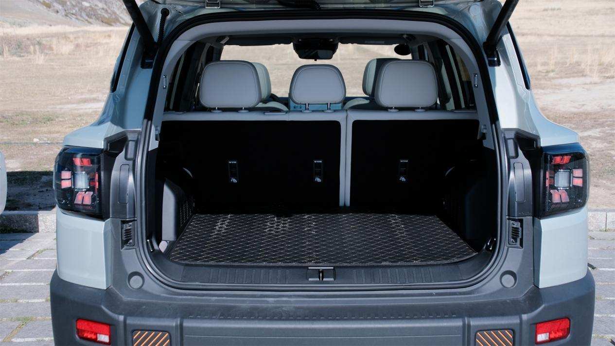 仰仗方盒子的造型,紧凑型的山海T1后背厢空间表现尚可,地板下方还有一层置物空间,用来放补胎液、千斤顶、三脚架之类的应急物品。