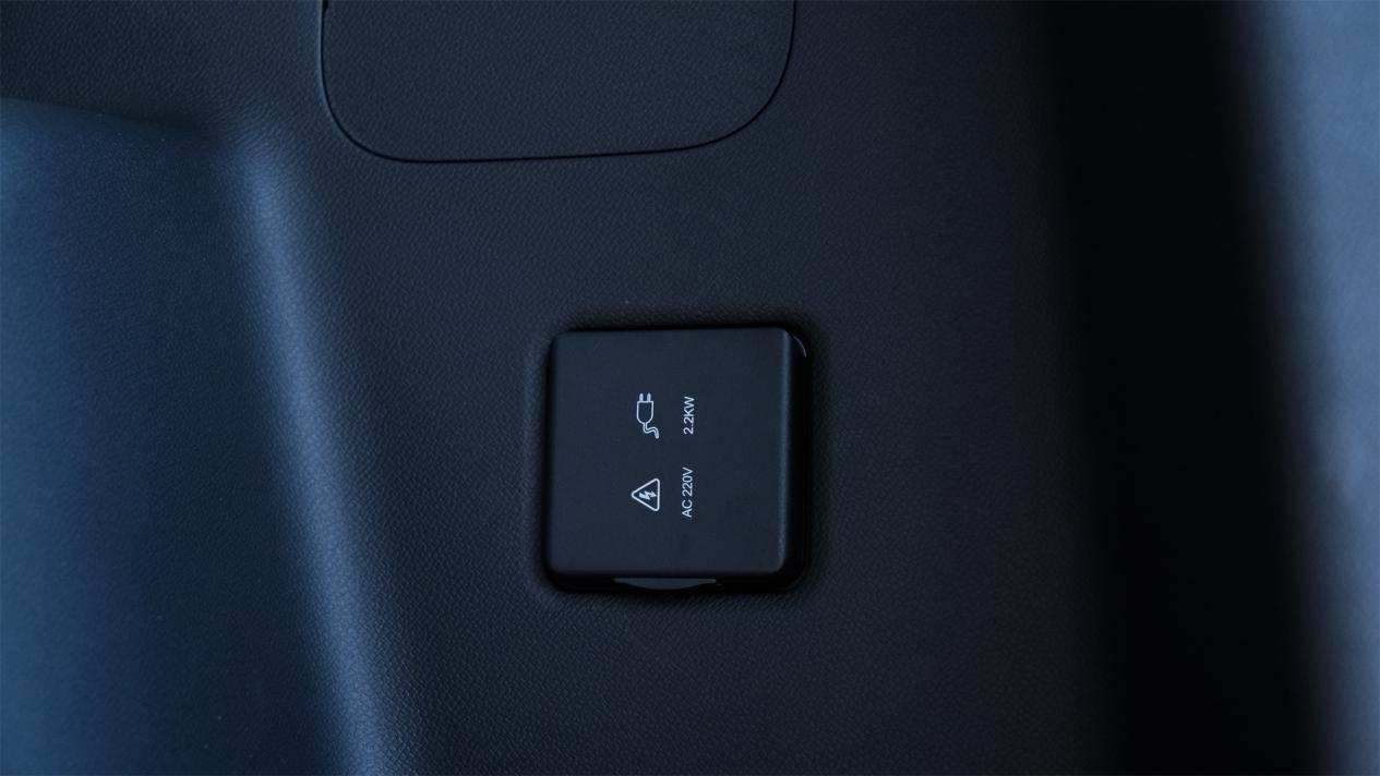 后背厢左右侧各有内放电接口,最高输出功率2.2kW。当然如果你有更大的用电需求,这台车也是支持6.6kW的外放电的,露营自然是不在话下。