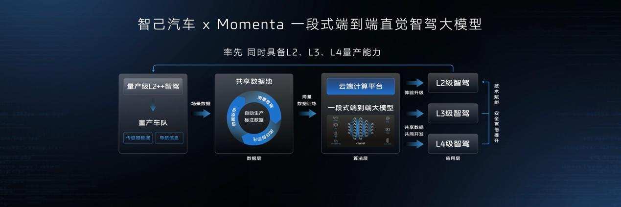 同时,智己汽车表示,基于智己汽车与Momenta联合打造的『一段式端到端直觉式智驾大模型』(后简称为『一段式端到端大模型』),使得其成为行业内首个同时具备L2、L3、L4级智能驾驶量产能力的品牌。今后,随着相关法律法规逐步出台,智己用户将最快享受全行业最领先的自动驾驶体验。