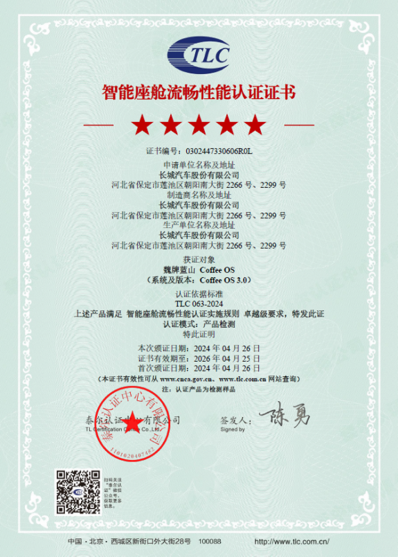 目前,这套全新一代全栈自研座舱系统Coffee OS 3已经上线,并首搭在魏牌蓝山智驾版上。在国内智舱系统如此内卷的大环境下,Coffee OS 3智慧空间系统以高水准的竞争实力,不仅拿下了连续4个月蝉联安兔兔车机版性能榜榜首,以及鲁大师发布的Q3季报新能源车车机流畅度榜第一名,和行业首个基于多屏交互的卓越级《智能座舱流畅性能认证证书》。