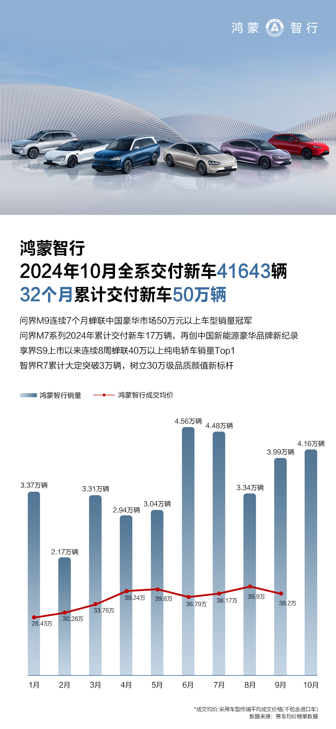 鸿蒙智行以32个月时间达成50万辆的新车交付,这组数据刷新了行业“50万台交付”的最快记录。仅用不到3年时间,不但在交付数量上创造了奇迹,而且鸿蒙智行征战的是豪华车型市场,势如破竹的品牌势能打破重重难关,这足以说明鸿蒙智行的技术价值和商业模式皆得到了市场的高度认可。