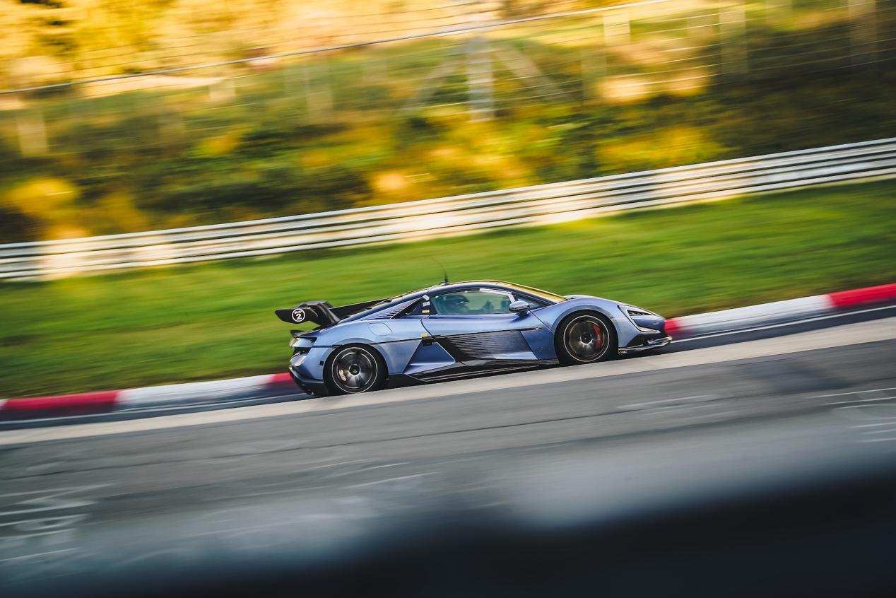11月5日晚,随着仰望测试工程团队完成了最后一次纽北包场,预示仰望U9的151天德国之旅暂告一段路。在此期间,仰望团队主要完成了两项验证测试:极速测试(ATP 测试场)——极速391.94km/h,中国汽车极速新纪录;赛道综合性能测试(纽北赛道)——圈速7分17秒90,中国超跑纽北阶段性成绩。