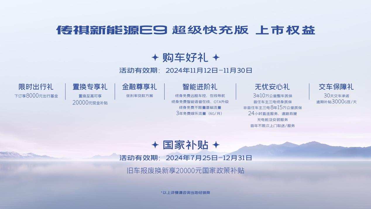 11月12日,传祺新能源基于『EV+无忧解决方案』,推出传祺新能源E9超级快充版(后简称『传祺E9快充版』)。