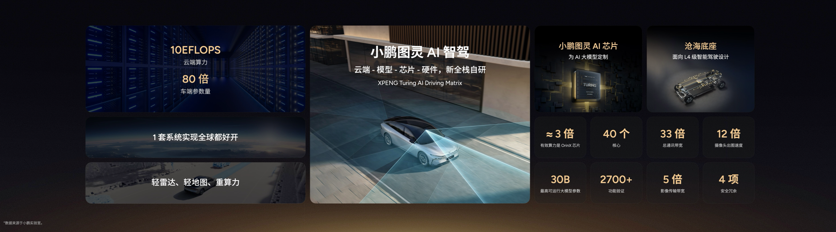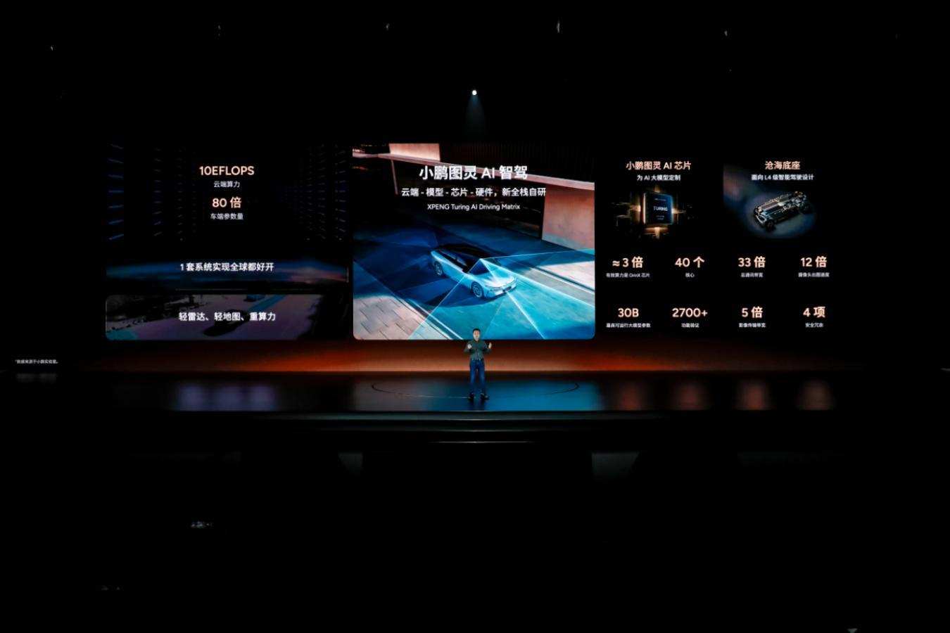 「小鹏图灵AI智驾体系」,素来以#智驾#为标签的小鹏汽车,在本次发布上重点介绍了「小鹏图灵AI智驾」、「小鹏图灵AI芯片」和「小鹏沧海底座」三大技术。