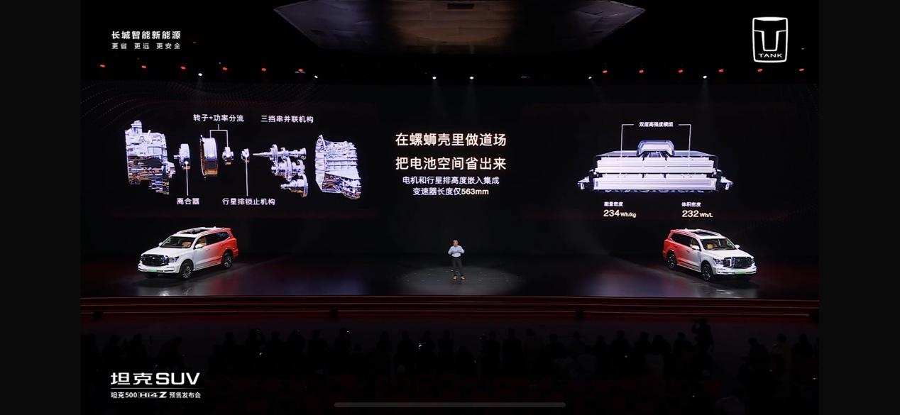 在首发车型坦克500Hi4-Z上,采用的是2.0T混动专用发动机(采用米勒循环、低压EGR等节能技术,最高热效率40%)最大净功率和净扭矩分别为180kW和380N·m。据悉,后续还将有热效率超38.5%的3.0T混动专用发动机。此外,P2电机的最大功率为215kW,最大扭矩为400N·m。