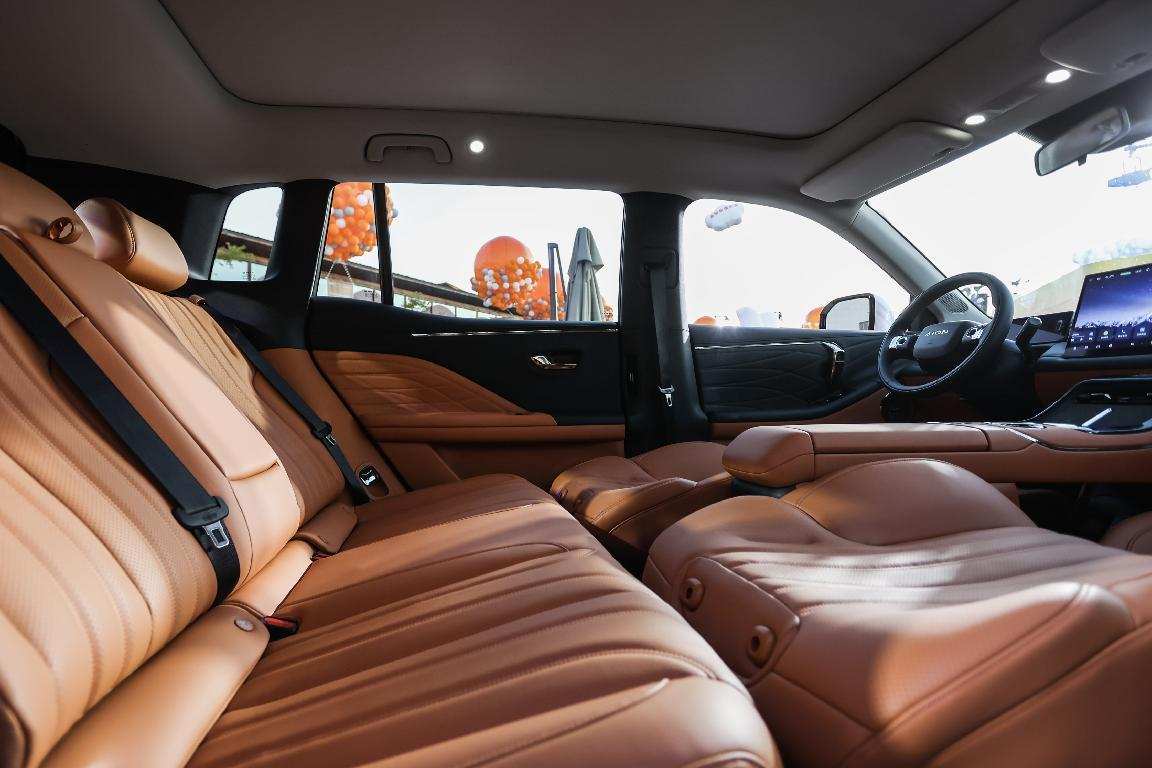 对于家庭用户来说,大空间是刚需。基于AEP3.0纯电专属平台打造的埃安霸王龙,从架构上就保证了空间表现。舱内有效使用长度达3002mm,后排腿部空间最高可达1106mm,挑高近1.3m,纯平的地台再加上接近90°的开门角度,出入更方便。