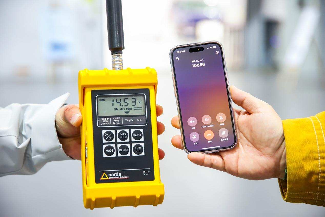 别克GL8 PHEV在开发初期就针对车辆怠速、加速、减速、匀速行驶、通讯等不同工况进行测试,并关注所有座位以及中控屏、扶手箱、排挡杆等位置的电磁辐射值,以保障在任何情况下的整体辐射值都低于100μT的安全限值。而在电磁辐射最强的区域脚踝以下的地方,经过严苛检测的别克GL8 PHEV的电磁辐射甚至比手机(8-20μT左右)更低。