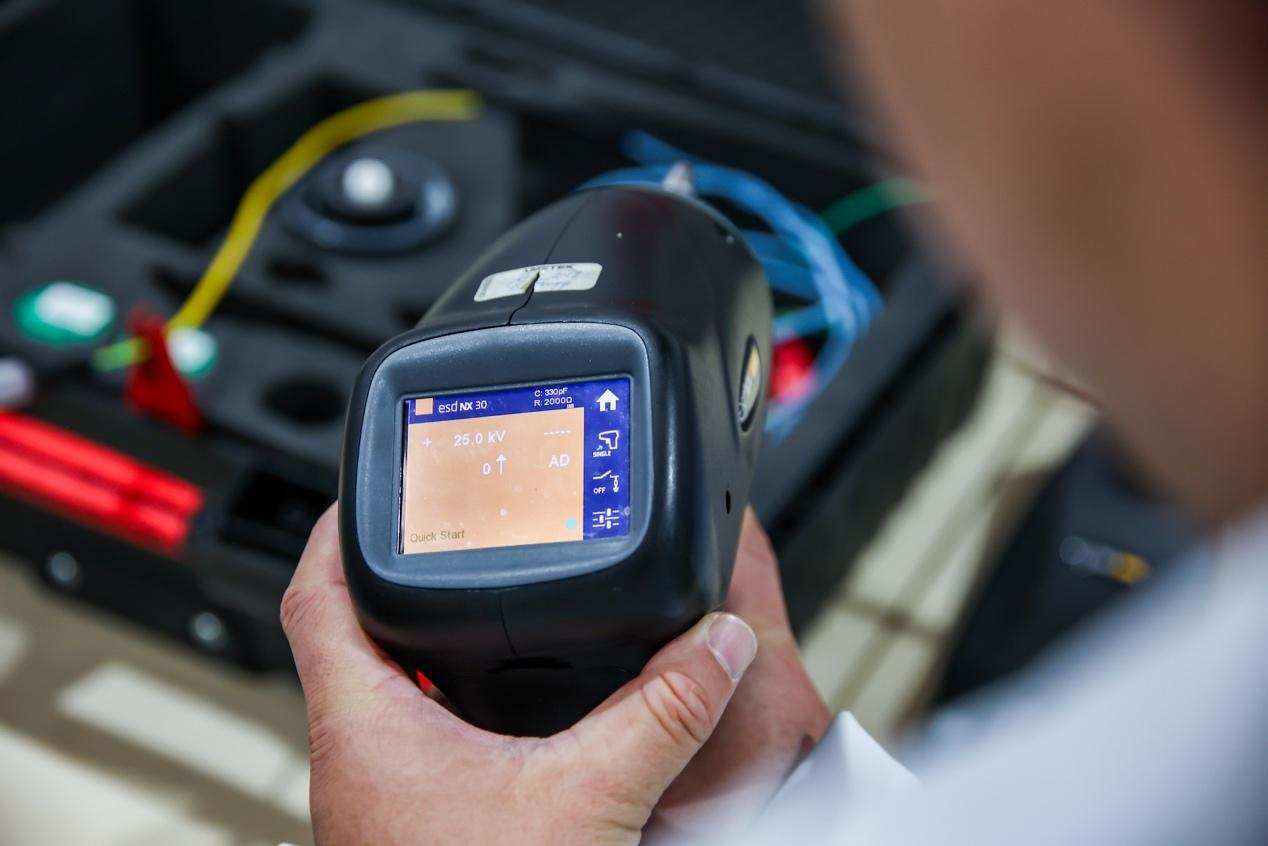 在静电放电测试中,别克GL8 PHEV坚持对车内外所有乘客能碰触到的地方进行测试,使用校准过的静电枪从低电压等级逐级增加进行静电放电测试,根据不同的位置不同的放电情况最高会达到25kV,确保顾客的车辆不会在秋冬季静电的发生,从而出现不必要的静电损坏。