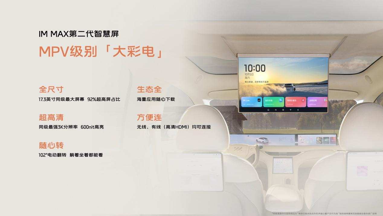 而被官方称为『MPV级大彩电』的『IM MAX第二代智慧屏』则是本次『升舱』的一大亮点,同级最大17.3英寸3K高清屏幕与LS6独有的『零重力、贵妃椅、大床房』三躺模式搭配,拓展出百变空间,坐着躺着观影都舒服,实现『移动头等舱』的娱乐自由。