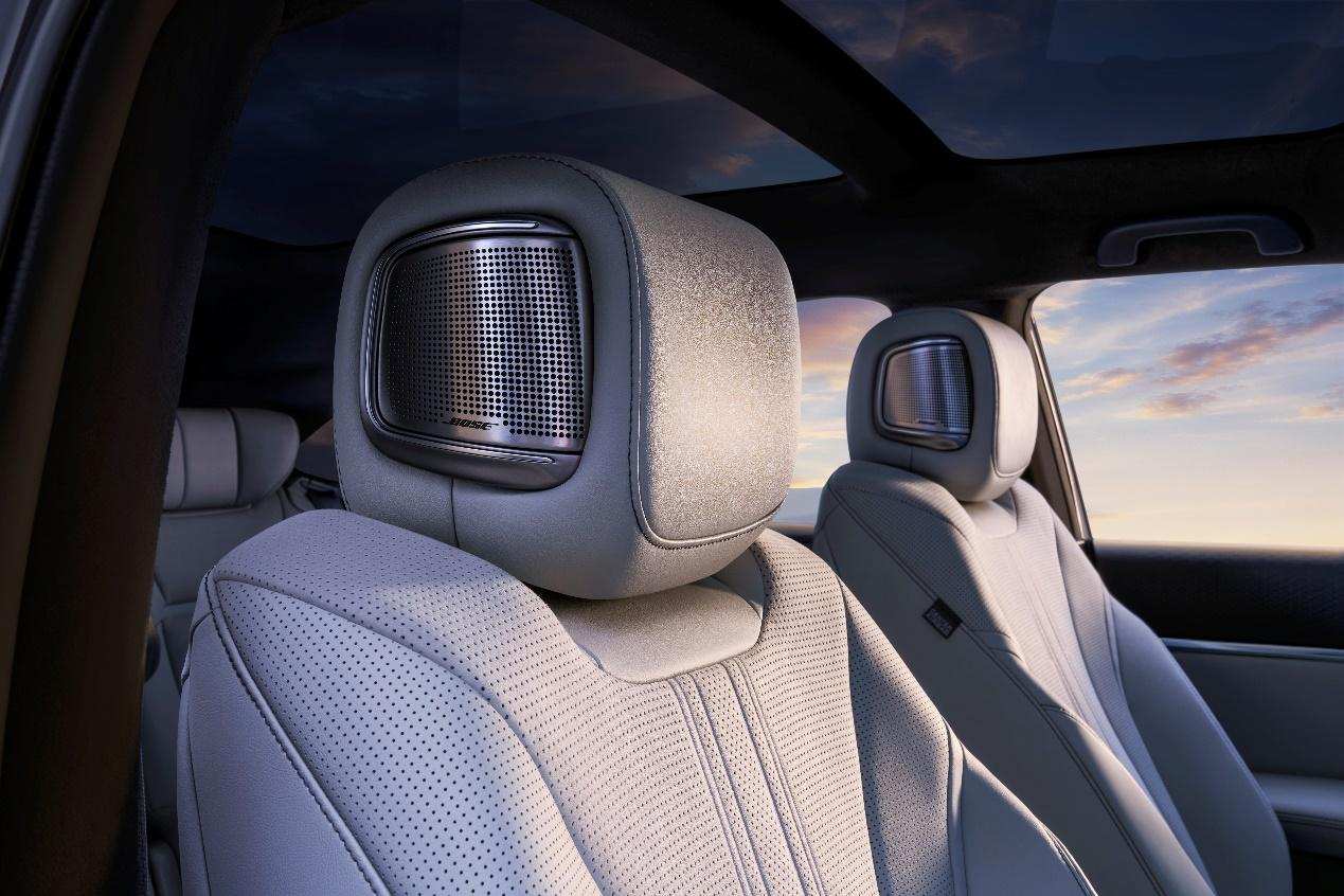 在1.85㎡五档调光天幕之下,科技与自然的对话悄然上演。这种对光影的掌控艺术,延伸至1256颗LED编织的智能光语系统:当音乐在16声道BOSE音响中流淌,导航提示音从头枕音响轻柔掠过,音乐旋律仍在座舱回荡。搭配7种定制香氛的智能香氛系统,仿佛置身花的海洋,驭风而行,香随心动,沉浸感满载。