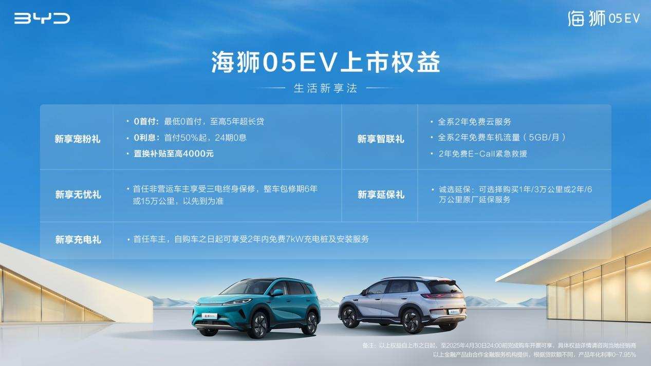 此外,在权益方面:即日起订购海狮05EV的用户可享0首付0利息、至高4000元置换补贴、全系2年免费车机流量(5GB/月)等在内的多重购车礼遇。详情请见官方海报,或至线下到店查询。