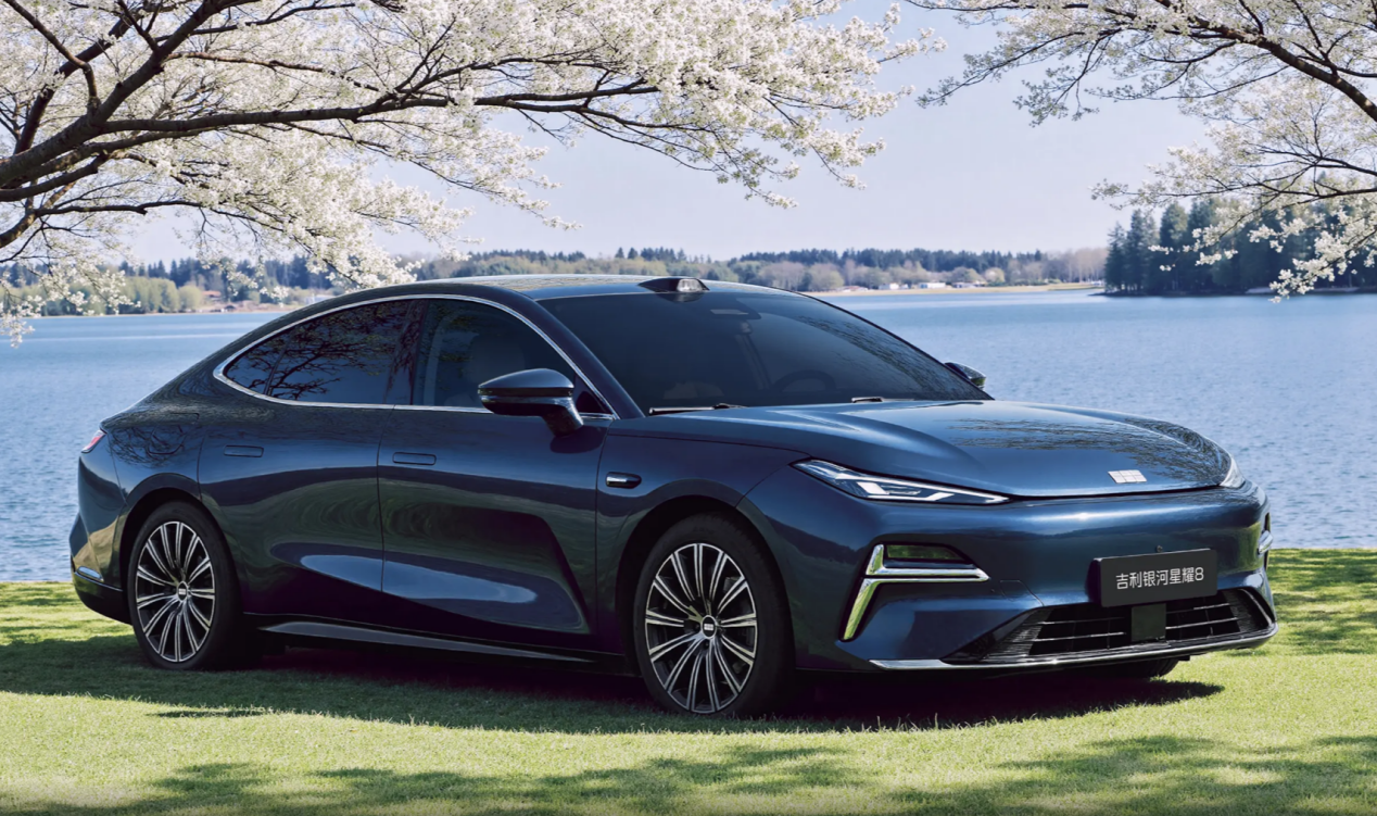 吉利银河星耀8采用「涟漪美学」家族设计语言,车身长宽高分别为5018/1918/1480mm,轴距2928mm,定位中大型轿车,空间表现接近宝马5系等豪华车型。新车外观设计融合中式元素,如「飞檐虎视」前大灯、「润玉流光」侧车身线条,并配备无框车门、隐藏式门把手及19英寸轮毂,风阻系数低至0.25Cd45。此外,新车还提供霁海蓝、山河翠、天既白等6种中国传统风格配色车漆。