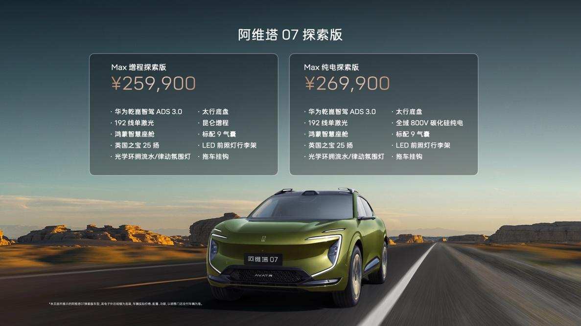 科技赋能,探索不止!阿维塔07探索版是在原版车型技术上配置升级,在标杆之上,再造标杆!作为阿维塔科技旗下第三款战略车型智美都市豪华SUV,阿维塔07拥有未来美学原创设计、都市豪华头等舱、卓越安全硬核实力三大顶流,以及华为乾崑智驾、鸿蒙智慧座舱、昆仑智慧增程、太行智控底盘、神行超充电池五大神器,为用户带来新豪华出行体验。
