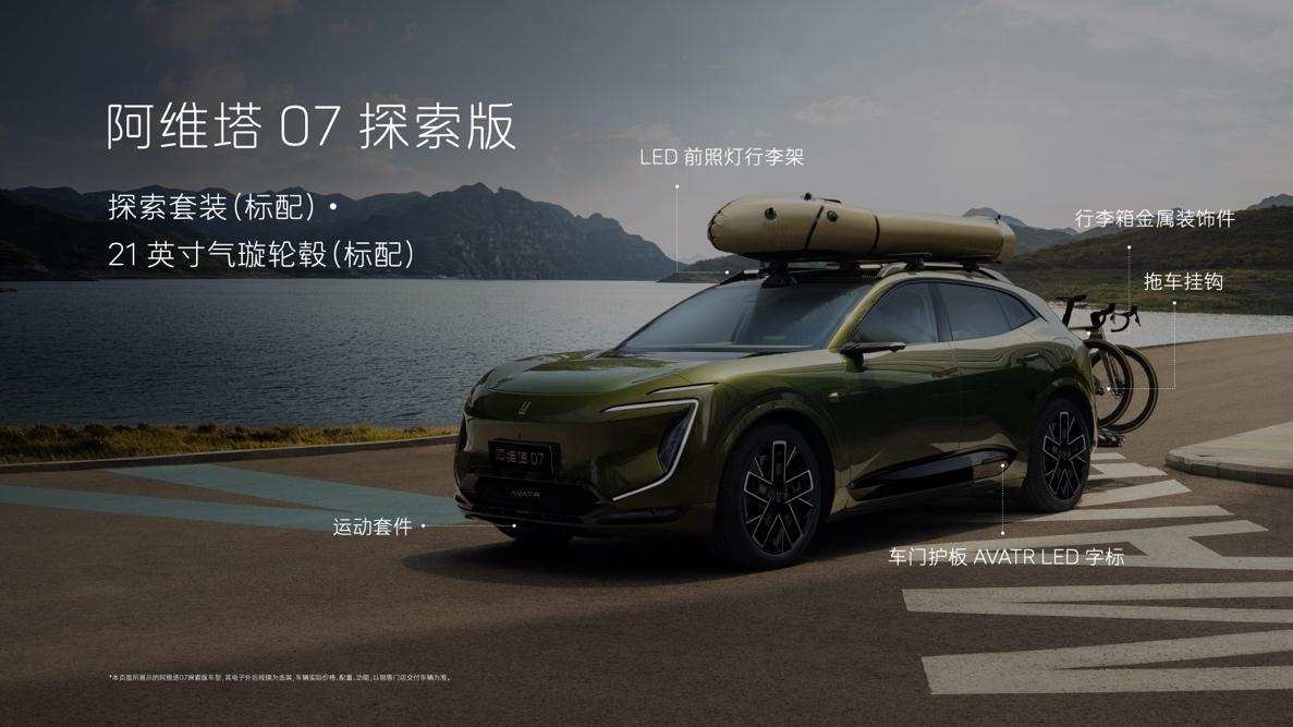 为了满足更多用户对出行边界的探索,阿维塔科技宣布,阿维塔07的Max 和 Ultra版本用户均可选装探索套装,Pro+和Max用户可选装21英寸气璇轮毂,以行业标杆姿态引领场景化的出行生态。