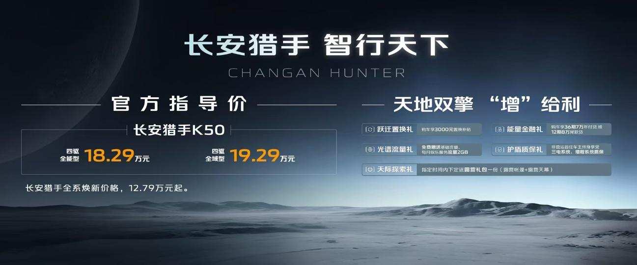 长安猎手K50四驱全能型,把科技带入日常,官方指导价18.29万元;