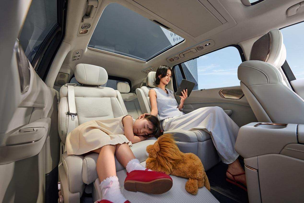 更重要的是,领克900对第三排座椅的重视。据悉,第三排座椅宽度近1.1m,可前后滑动125mm,支持最大155°大角度后仰调节及一键调节二排座位,而且,在第三排依旧配备云感舒压座椅,并标配加热、按摩功能。同门可拥有四排座椅的MPV师兄表示,学得挺好,我有点慌。