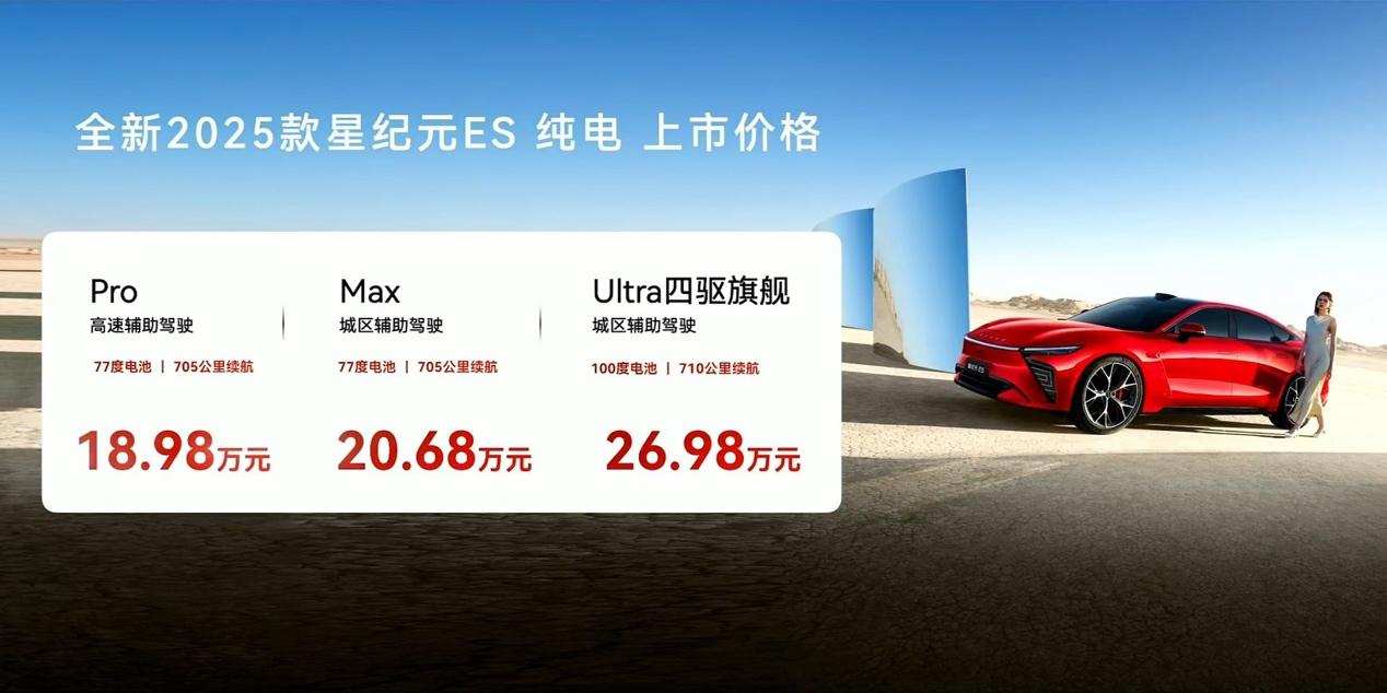5月18日,全新2025款星纪元ES纯电(后简称「星纪元ES纯电」)在杭州耀目上市。本次共发布3个版本车型,上市价格为18.98万元、20.68万元以及26.98万元。