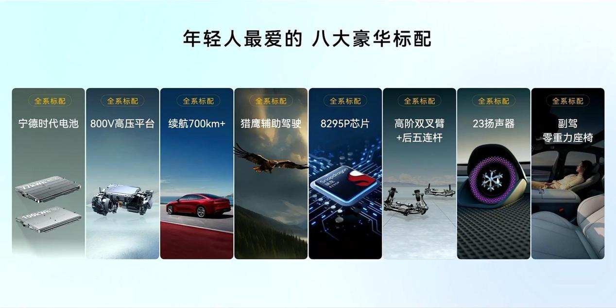 综合来看,个人比较推荐上Ultra版,感受满血版体验。不过,话又说回来,Pro版的配置放在当下也是比较顶的,以上8项亦是标配,包含宁德时代电池、800V高压平台、续航700km+、猎鹰辅助驾驶、8295P芯片、高阶双叉臂+后五连杆、23扬声器和副驾零重力座椅。此外,Pro和Max的两者差价也不太大,不到2万,故此,推荐级别一致。
