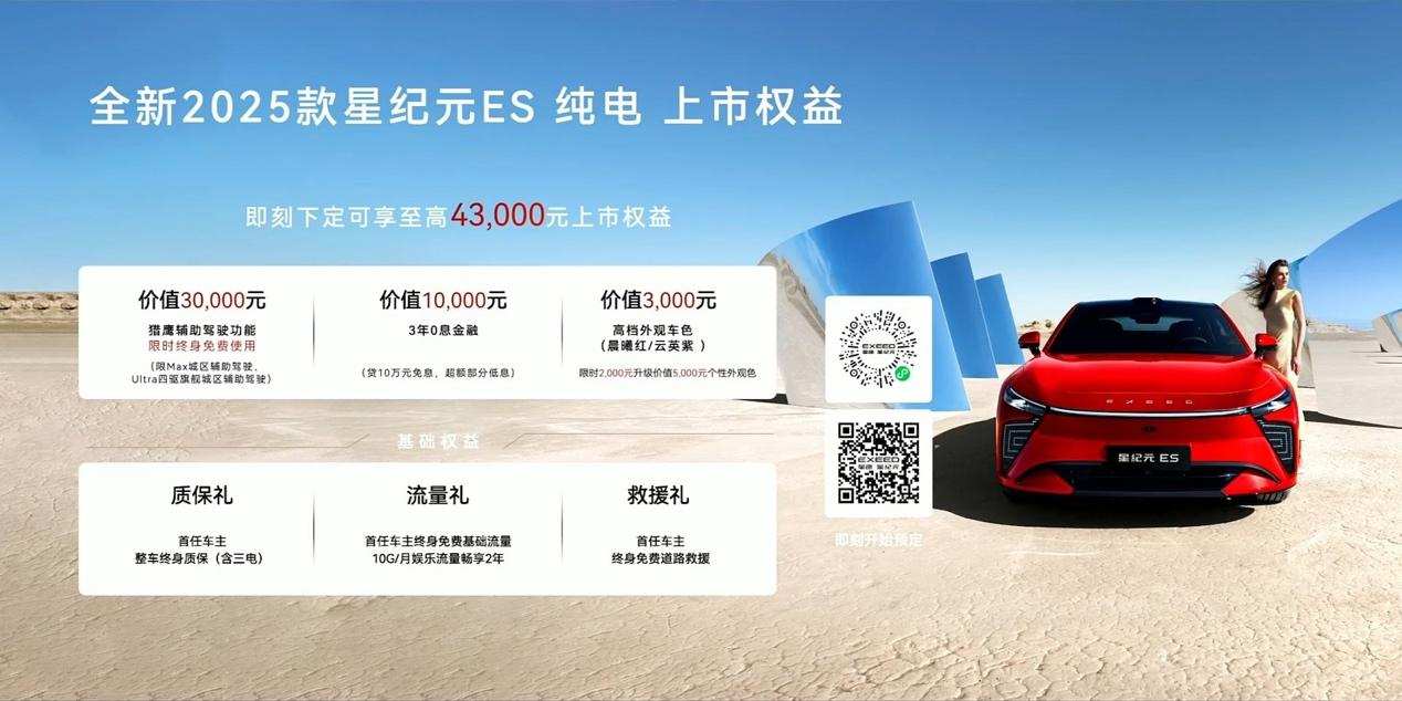 在权益方面,官方表示即日起至6月30日24:00前下定锁单,可享受至高4.3万元的购车权益,包括猎鹰辅助驾驶功能限时终身免费使用(限Max版及Ultra四驱旗舰版)、3年0息金融方案(贷 10 万元免息,超额部分低息)以及限时特惠车色,即限时2000元升级价值5000晨曦红/云英紫个性外观色。更多详情可登录官方App进行了解。