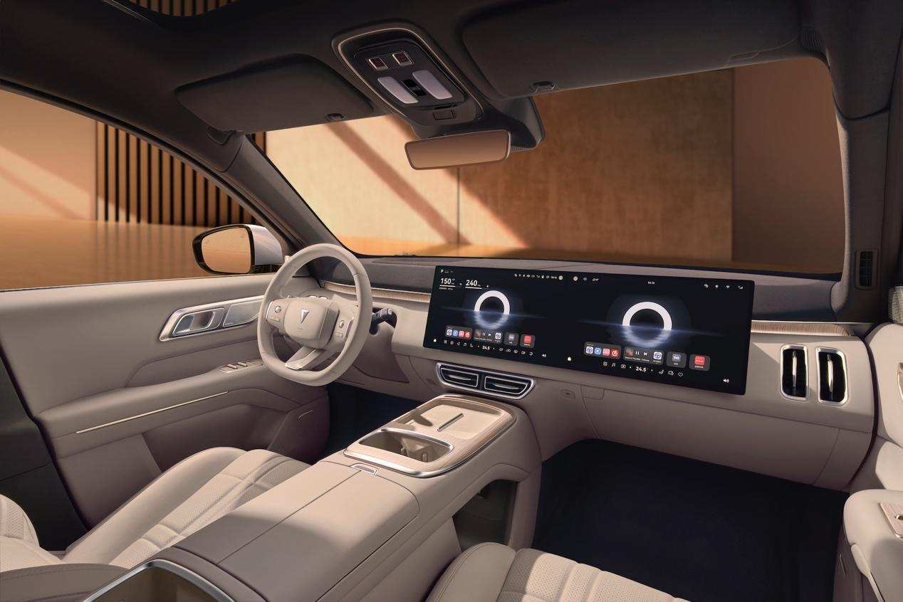 深蓝S09采用了全新底盘架构,前双叉臂后H臂多连杆、分体式CDC空悬、主动魔毯、21英寸米其林超静音轮胎,带来百万级豪华底盘驾乘质感。新车还配备可移动的10L冷热两用智能冰箱(比友商大1L),支持-6℃至50℃温度可调,前排双15.6英寸2.5K超高清巨幕联屏,后排21.4英寸3k 高清娱乐屏。底盘稳,冰箱彩电大沙发皆是给到。