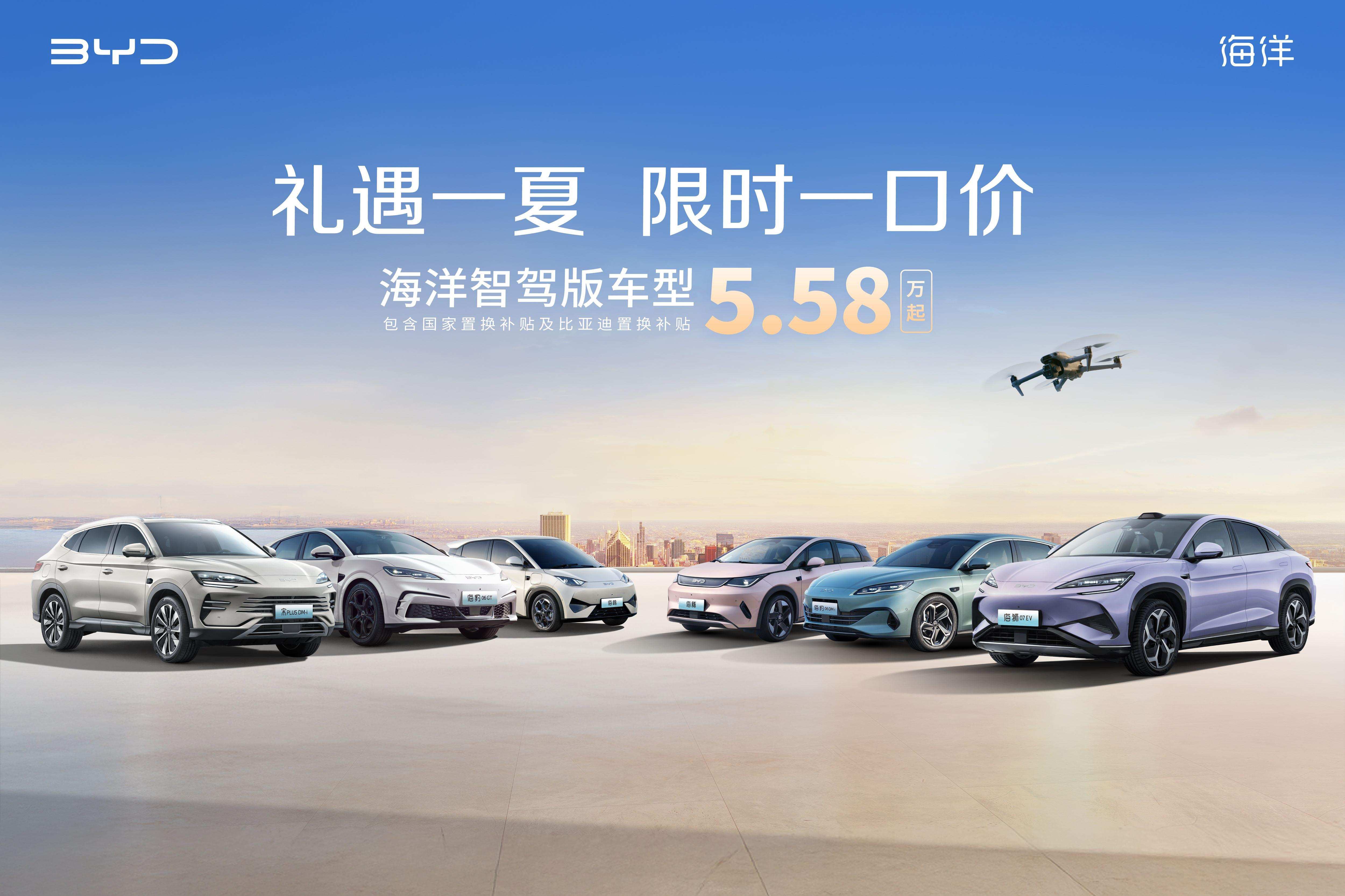 为回馈广大用户的支持与厚爱,比亚迪海洋网推出“礼遇一夏,限时一口价”活动,即日起至6月30日,购买海鸥智驾版、海豚智驾版、宋PLUS智驾版、海豹06DM-i智驾版等10款智驾版车型,即可享受限时一口价的惊爆活动,其中海鸥智驾版限时一口价5.58万,海豚智驾版限时一口价7.78万,宋PLUS DM-i智驾版限时一口价9.98万,宋PLUS EV智驾版限时一口价11.78万,海豹06DM-i智驾版限时一口价7.68万,以实际行动让利消费者,助力更多用户轻松解锁高品质新能源出行生活。