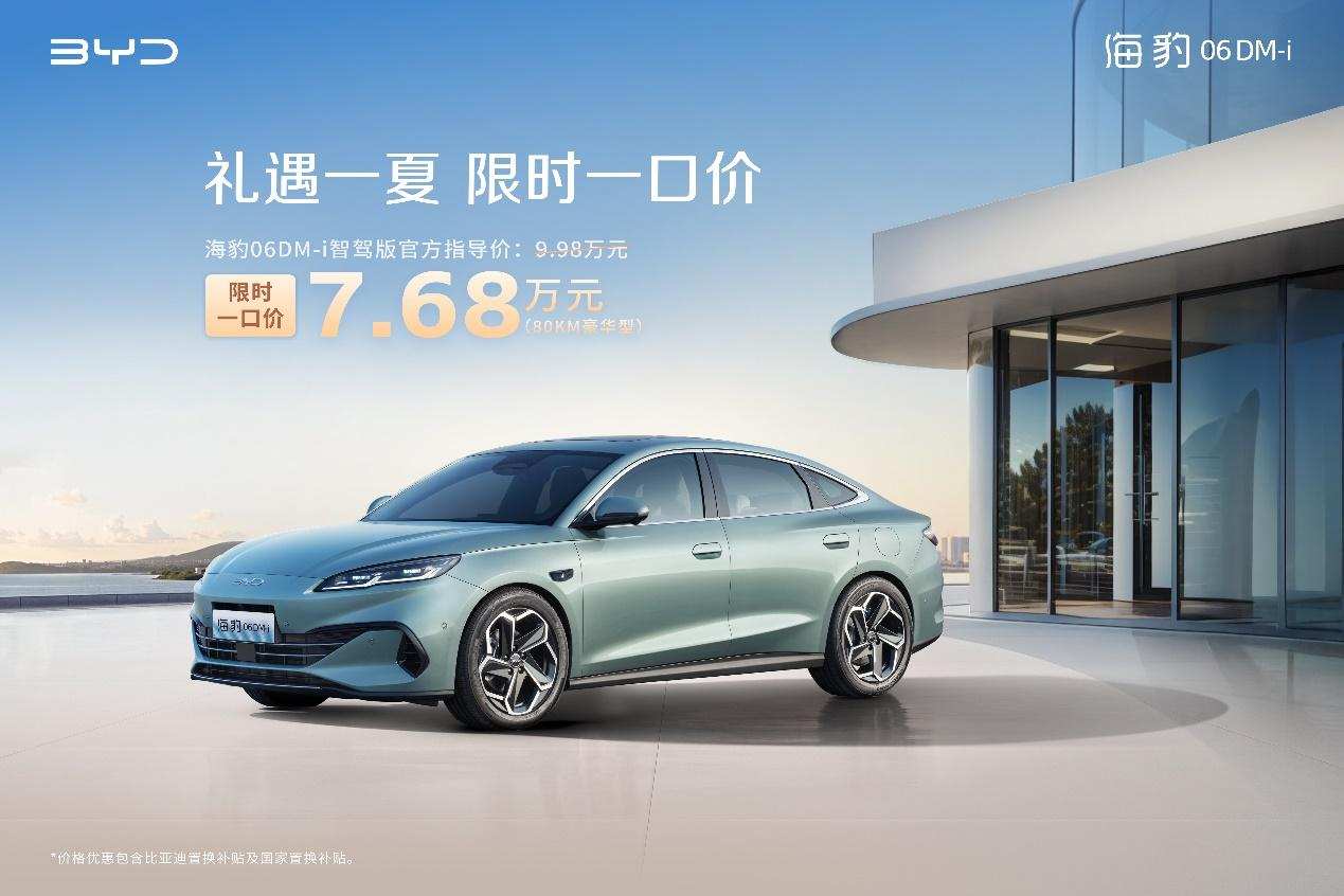 比亚迪海豹06DM-i上市以来,以全维越级实力成为现象级爆款,为回馈用户的支持和厚爱,近日,比亚迪海洋网推出“礼遇一夏,限时一口价”限时钜惠活动。即日起至6月30日,下单购买海豹06DM-i智驾版,即可享限时一口价7.68 万元,以实际行动为消费者带来实惠,助力更多用户享受更高价值的新能源出行体验。