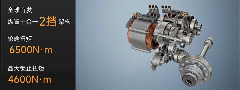 而后缀为『O』的系列,则主要通过后桥的大功率「轮边电机」(即EDU400/600)进一步满足高功和低扭需求,同时为大梁、差速锁等组件留出布置空间。