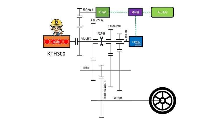 KTH230的结构其实还是比较明确的,其动力源由「混动专用发动机」(目前使用1.5TGDI)、「P2电机」与「P3电机」构成。