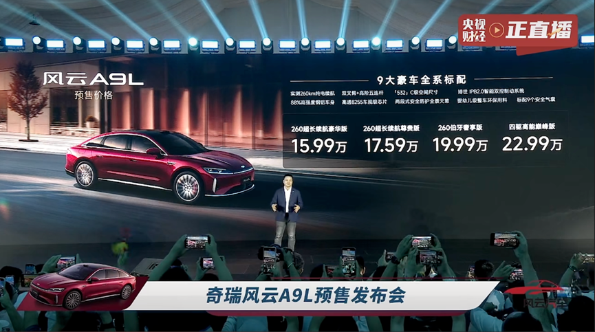 6月26日,奇瑞风云A9L以一场聚焦『全球真C级旗舰』的预售发布会,在央视财经的镜头下揭开价格面纱——15.99万至22.99万元的预售价区间。新车拥有260km纯电续航、88%高强度钢铝车身等9大豪车级标配,在新能源市场再次掀起波澜。