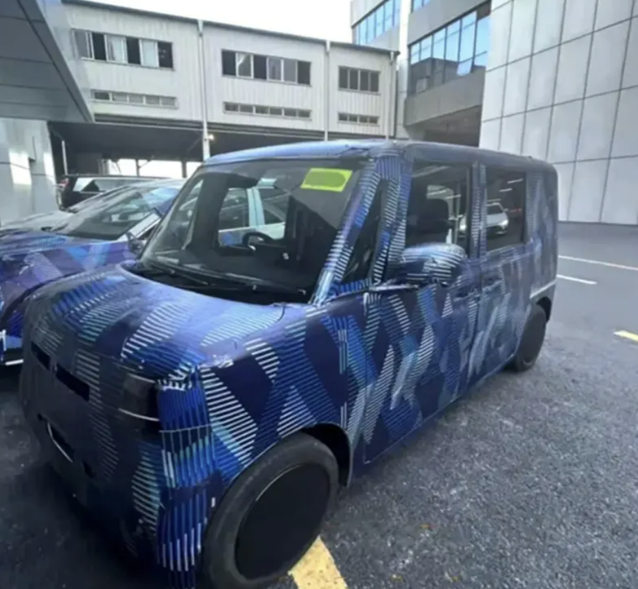 从谍照上看,新车造型方正小巧,封闭式格栅搭配双层日行灯,集成转向灯功能;四门布局+后排侧滑门,滑轨位于后轮眉上方,节省空间且便于狭窄空间操作。尾部竖向尾灯组与后雨刷增强实用性。车窗下沿居中设计,为头部预留宽裕空间。