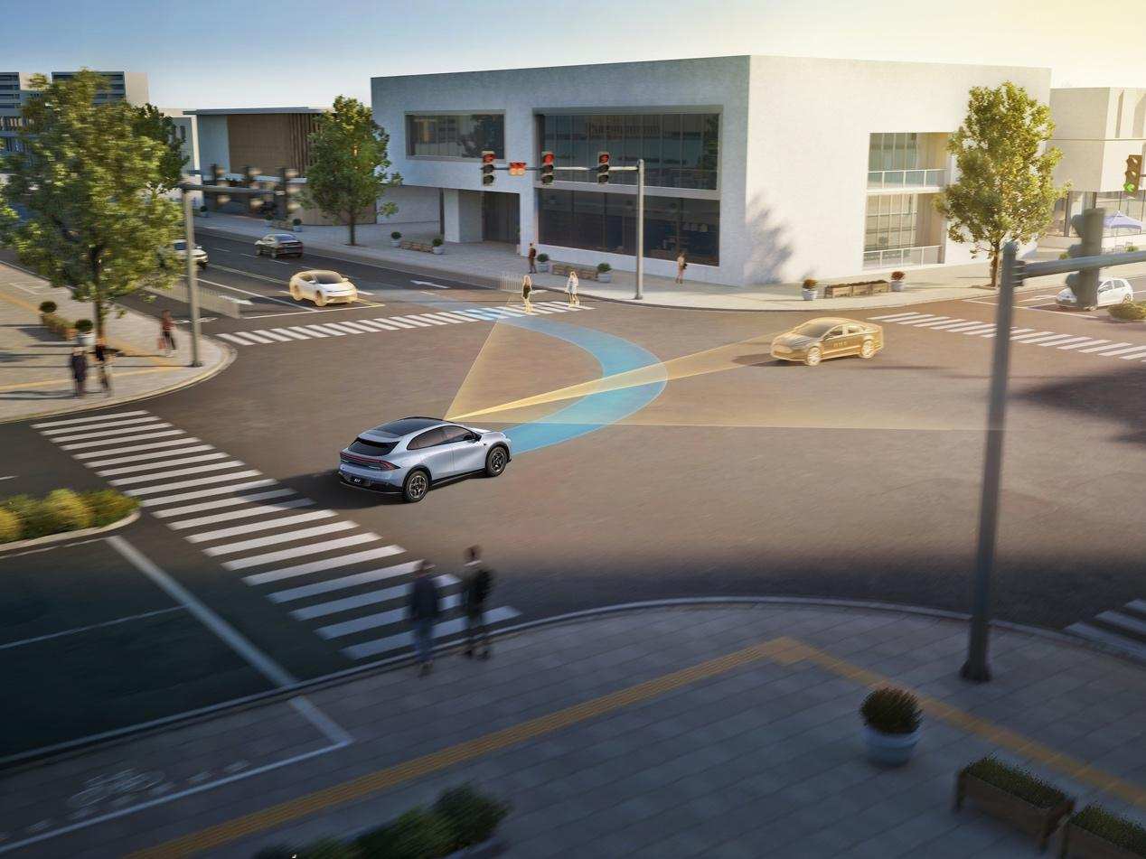 同时,也展示了此前我们详解过的『追光全景』抬头显示,在实际运用中的效果,比如将导航路线直接投射到挡风玻璃,覆盖主辅路、弯道等8大场景,其虚实贴合的视觉效果,相当不错。
