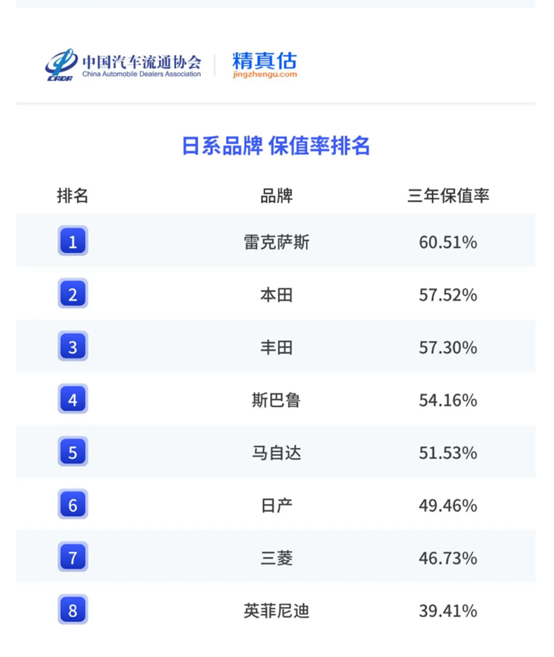 高品质带给用户的不仅是优质的用车体验,还直接体现在了车辆的保值率上。中国汽车流通协会《2025上半年中国汽车保值率研究报告》显示,雷克萨斯三年保值率达60.51%,位居日系品牌榜首。 其中ES车型以63.89%的保值率拿下『进口中大型车第一』,NX以56.18%进入『进口中型SUV前三』。对于用户而言,『买时放心,卖时保值』的双重保障,构成了最直接的购买理由。