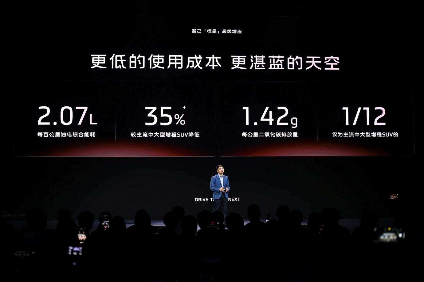 这些技术叠加的结果,是5.32L/100km的同级最低亏电油耗——作为中大型SUV,这一数据已接近小型燃油车的水平。而2.07L/100km的油电综合能耗,较主流增程车型降低35%,每公里二氧化碳排放量仅1.42g,相当于传统增程车的1/12。