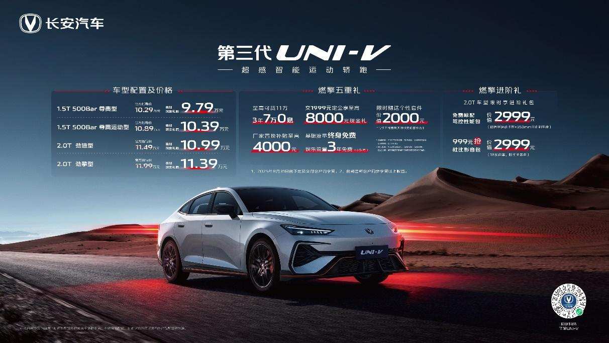 燃擎现金礼:交1999元定金,享至高8000元现金礼;叠加现金礼后,购买第三代UNI-V 9.79万元起!