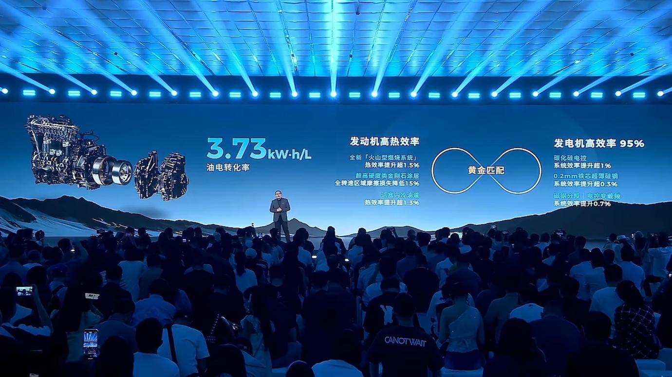 首先来聊星源增程的超高效。在增程式电动车的技术体系中,能量转化效率直接决定了车辆的经济性与续航能力。星源增程技术在『开源』与『节流』两个维度同时取得了突破性进展。在『开源』方面,广汽通过对增程器的全面优化,实现了行业领先的油电转化效率。其应用的全新『火山型燃烧系统』、活塞内冷等发动机技术,配合电控变载频技术、碳化硅电控系统等发电机技术,使发动机与发电机达成黄金效率匹配,最终实现了3.73kWh/L的油电转化效率,这一数据显著高于行业主流增程器3.4kWh/L的平均水平。