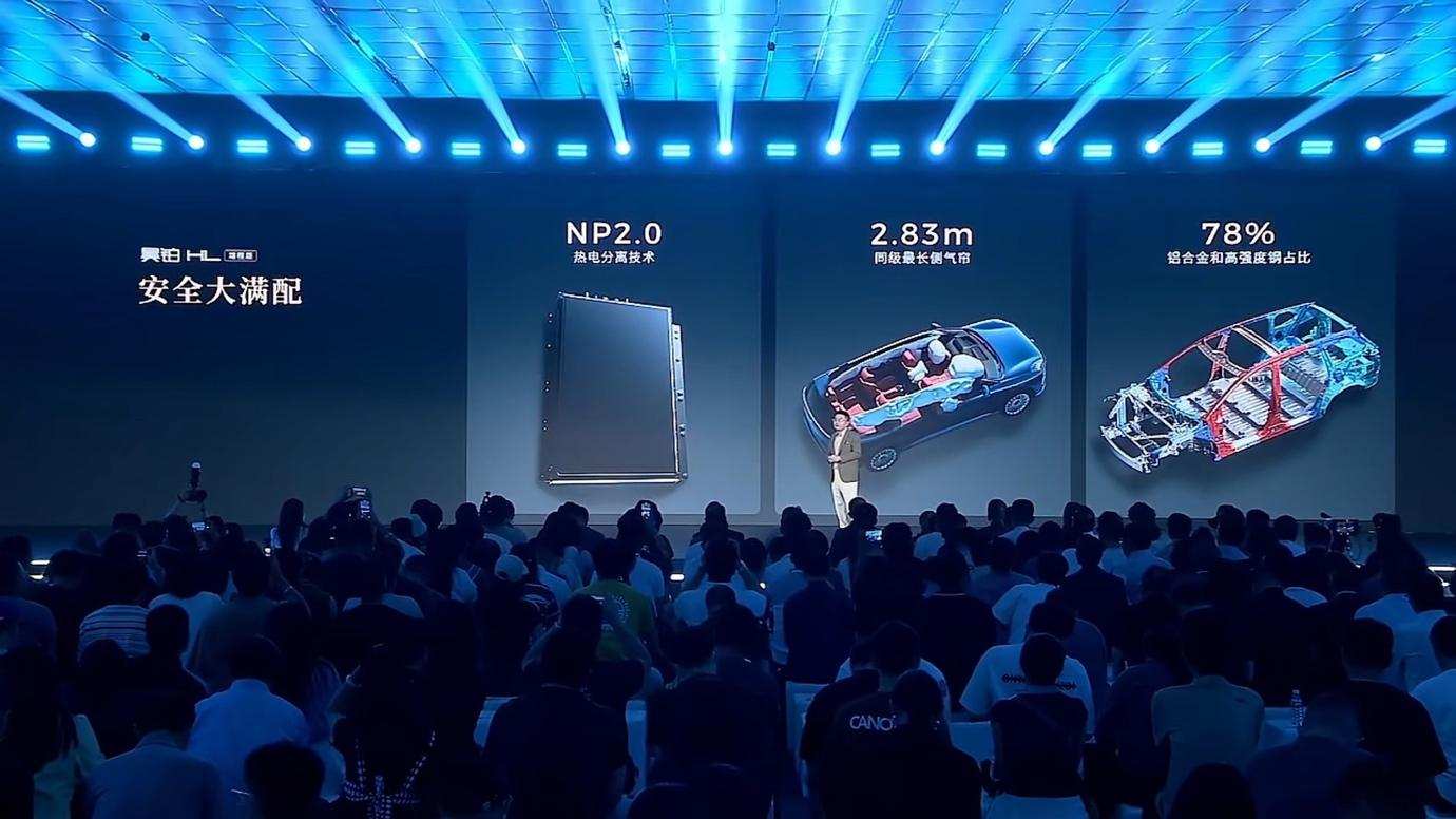 安全性能方面,昊铂HL增程版采用超强泰坦笼式钢铝混合车身,铝合金与高强度钢占比78%,通过2024版C-NCAP五星安全认证。电池安全上,采用NP2.0热电分离技术,从根本上杜绝电池安全隐患,为用户打造『移动的安全堡垒』。