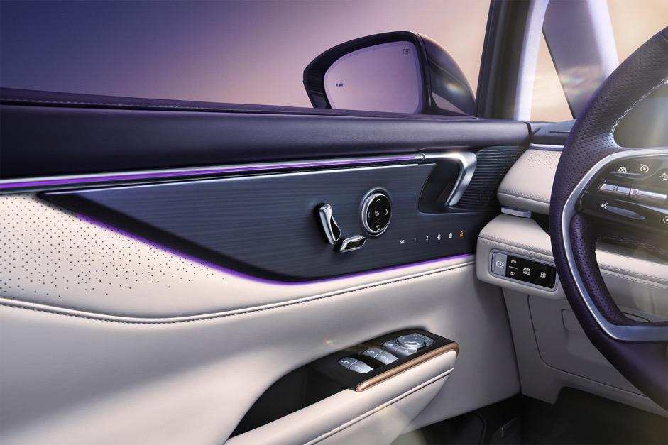 车门部位全系标配Smart Touch光感触控板,通过16层精湛工艺实现金属拉丝质感,将门锁、座椅记忆等功能开关集成于面板之下,既简化了操作界面,也让车门内侧更显整洁。