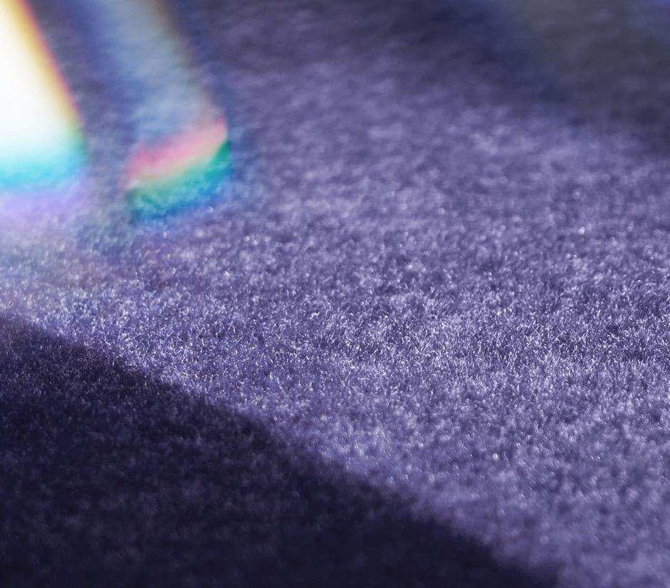 材质选择上,车舱顶部运用大面积超细纤柔麂皮绒面料,视觉上呈现出媲美顶级手工皮具的豪华哑光质感,每平米超一亿根的绒毛密度则确保了温润亲肤的触感,避免传统织物顶衬的粗糙感。