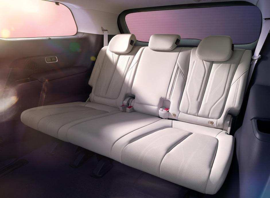 值得一提的是,新车对『豪华』的诠释不仅停留在视觉层面,更体现在实用性配置上。全车三排座椅均使用北美超柔全粒面头层Nappa真皮包覆,这一配置为全系标配,触感如婴儿肌肤般细腻柔软,避免部分车型『前排豪华、后排简陋』的情况。