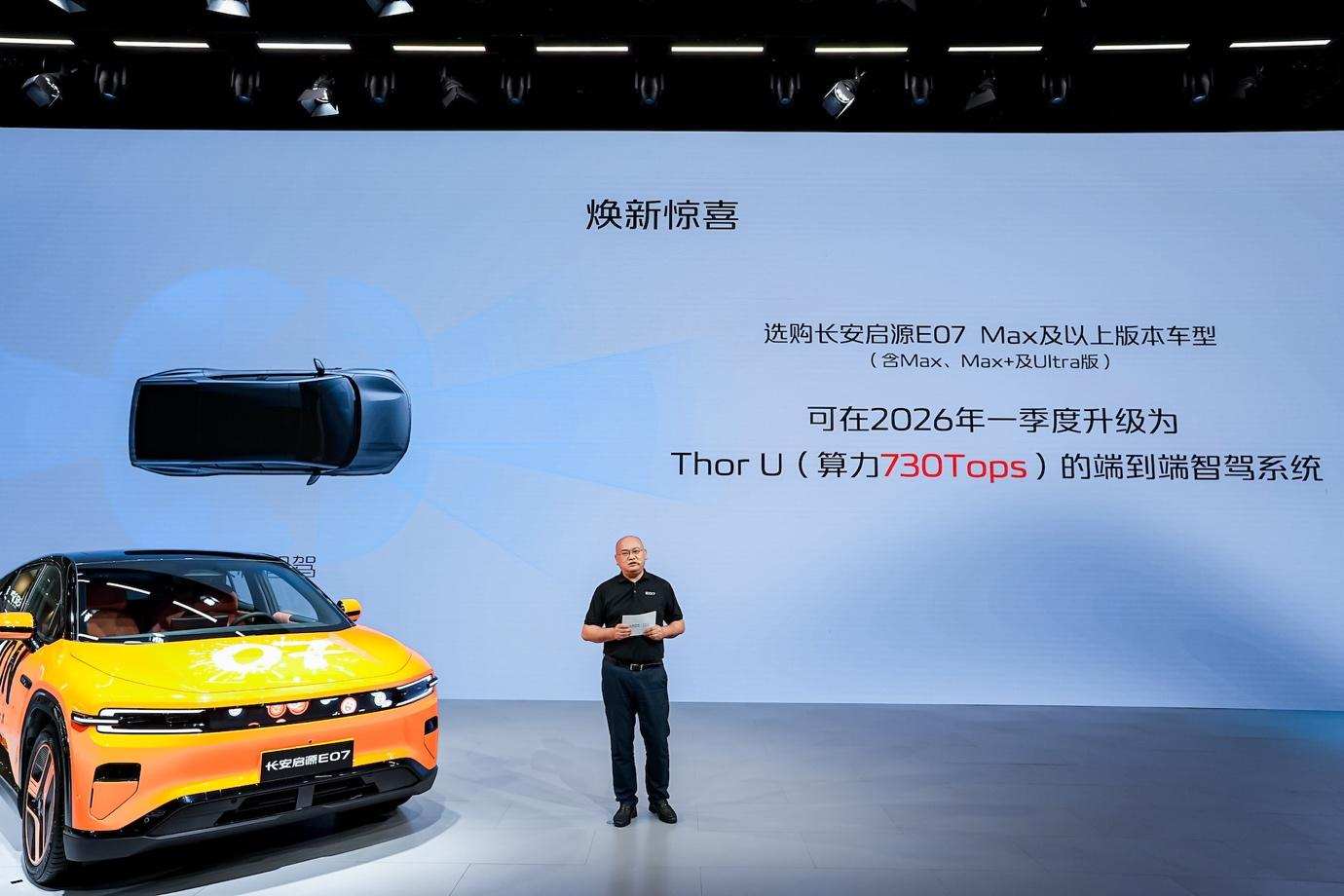 在智能驾驶领域,长安启源E07此次焕新释放的『技术彩蛋』——Max及以上版本(含Max、Max+、Ultra版)将于2026年一季度升级搭载高算力Thor U智驾系统(算力730Tops),并实现全栈自研的『端到端』城区智驾功能——堪称其技术竞争力的核心。从行业视角来看,这一升级不仅体现了长安在智驾领域的研发实力,更精准击中了大城市用户『城区驾驶疲劳』的核心痛点。